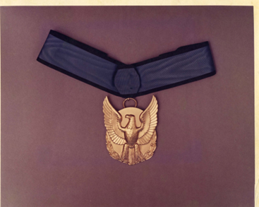 The Chaplain’s Medal for Heroism, also called the Chaplain’s Medal of Honor and the Four Chaplains Medal, authorized by Congress in 1960, commemorates the actions of the Four Chaplains. The medal was presented to the Four Chaplains’ next of kin on 18 January 1961 at Fort Myer, Virginia, by Secretary of the Army Wilber M. Brucker.